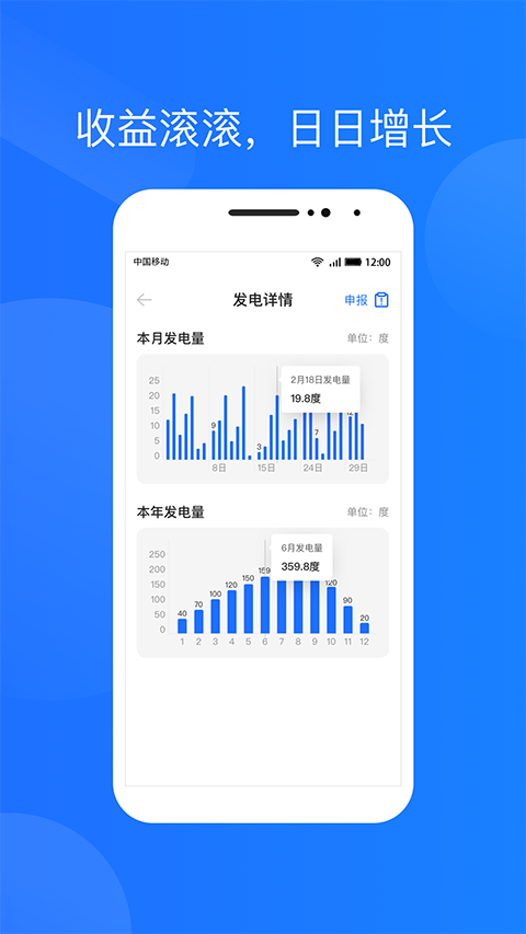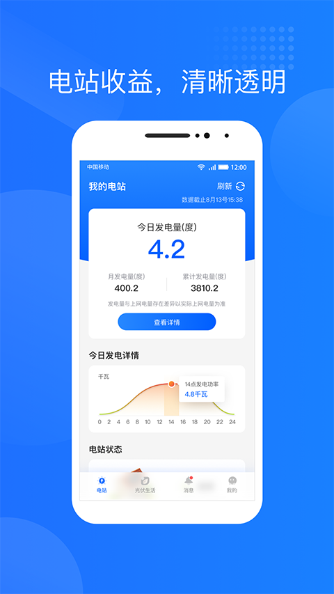 1、带来掌握监控、运维、管理等服务,让管理电站更加方便,一部手机就可以轻松搞定。 2、能够对电站情况了如指掌,如果有任何异常情况都会及时发起通知。 3、可以随时掌握电站发电量以及收益,通过刷新功能实时查询数据信息。 4、将发电数据以及发电收益量进行统计,直观的让你看到详细信息。 5、可以收看关于电站方面的知识科普以及发电收益分析,丰富你的视野。更新日志