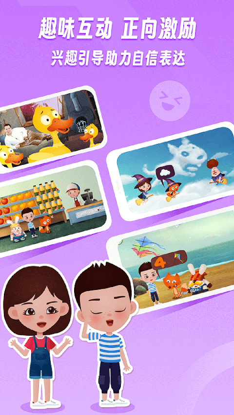 1、专属于儿童英语启蒙地,在这里互动也好还是交流都是小问题 2、提升学习效率不说,还可以在上面参与到一些户外扩展里面去哦 3、在采用孩子最易接受的动画形式,结合英语教学内容“寓教于乐”的基础上,融入智能外教“1对1”的全程指导教学 4、呆萌风趣的Jim老师把上课变成了一件超好玩的事情,做每个孩子心中的“良师益友” 5、让孩子参加到互动式动漫中,积极饰演故事情节人物角色,在游戏化的全过程中轻轻松松学英语软件亮点