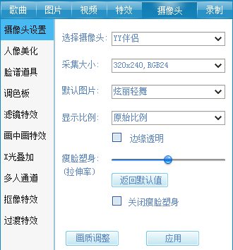 你也可以点击右边的主界面中的摄像头标签进行设置。