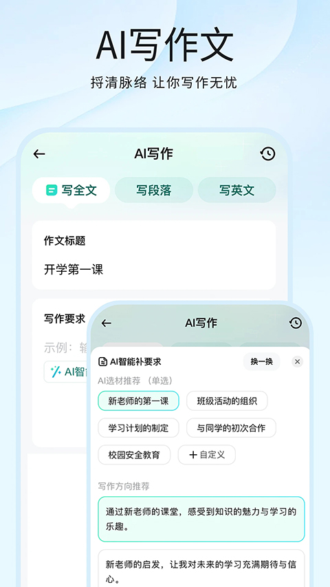 - 全新五维评价体系,优缺点一目了然 - 一键导出Word报告,学习更高效 - 润色前后对比,进步看得见 - 作文库新增阅读理解技法讲解,训练更系统