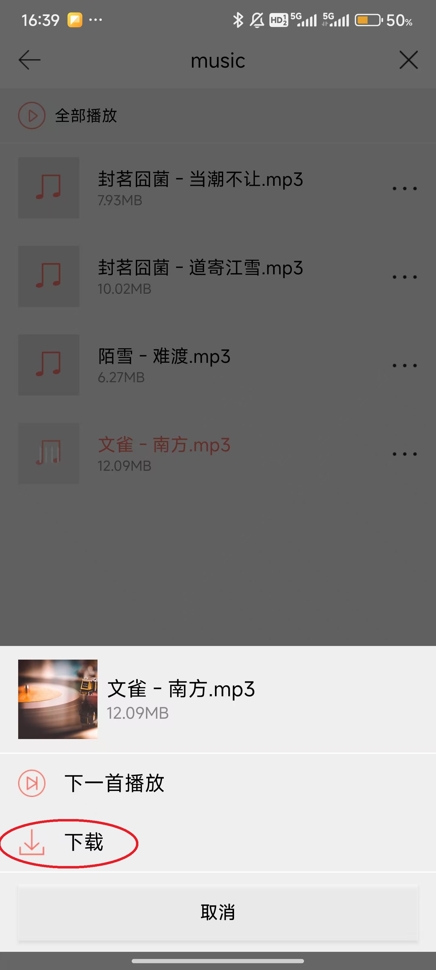 6、直接点击需要下载的歌曲。