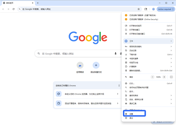 1、进入Chromium浏览器,点击右上角三竖点标识。