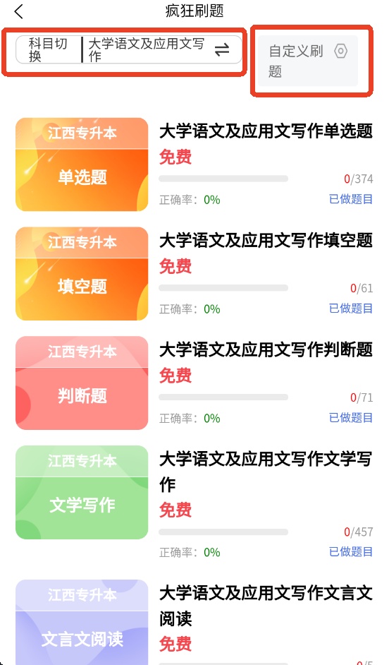3、点击做题-立即做题,可以选择不同的科目进行刷题,左上角可以设置每组题目的数量。