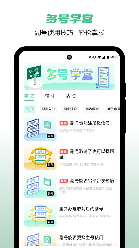 1、【副号秒申请,瞬间拥有副号】 不用去营业厅,10秒钟就可以拥有一个新手机号码(副号),副号为11位真实的中国移动号码,最多可以同时使用三个副号,多重身份随意切换 2、【副号一键随时开关机,骚扰电话进不来】 主、副号可以同时在线,副号可实时、定时开关机,或关闭电话、短信其中一个功能,自由设置;您还可以随时取消副号,彻底远离各种骚扰 3、【通信质量有保障,副号来电话不漏接】 运营商通信网络,副号电话接通时间短,通话质量有保障; 4、【副号共享主号套餐,无需单独交费】 副号可共享主号所有套餐,无需单独办理,业务功能费主号话费支付,方便快捷 5、【副号安全有保障,无需担心副号丢失】 中国移动官方出品,副号一经申请,可长期持有软件亮点
