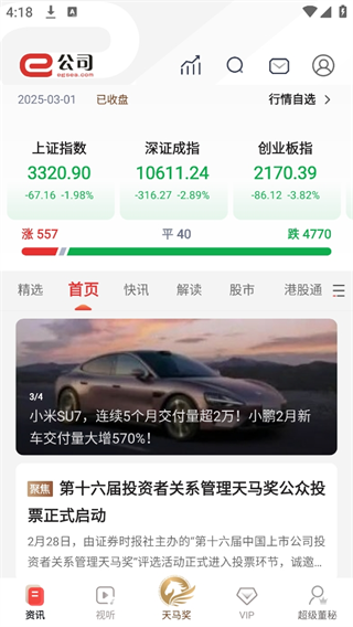 1、实时财经资讯 快讯推送:提供24小时全球金融市场实时快讯,涵盖股票、债券、外汇、大宗商品等领域。 深度报道:发布独家深度分析和行业研究报告,帮助用户全面了解市场动态。 2、上市公司信息 公司公告:实时更新上市公司公告、财报、重大事项等信息。 股东动态:跟踪大股东增减持、机构调研等关键数据,帮助用户掌握公司动向。 3、个性化推荐 定制内容:根据用户的兴趣和关注领域,智能推荐相关新闻、公司信息和市场分析。 自选股提醒:支持用户添加自选股,实时推送股价变动、公告和新闻。 4、数据工具 行情查询:提供全球股票、基金、期货等市场的实时行情数据。 财务分析:整合上市公司财务数据,提供盈利能力、偿债能力等关键指标分析。更新日志