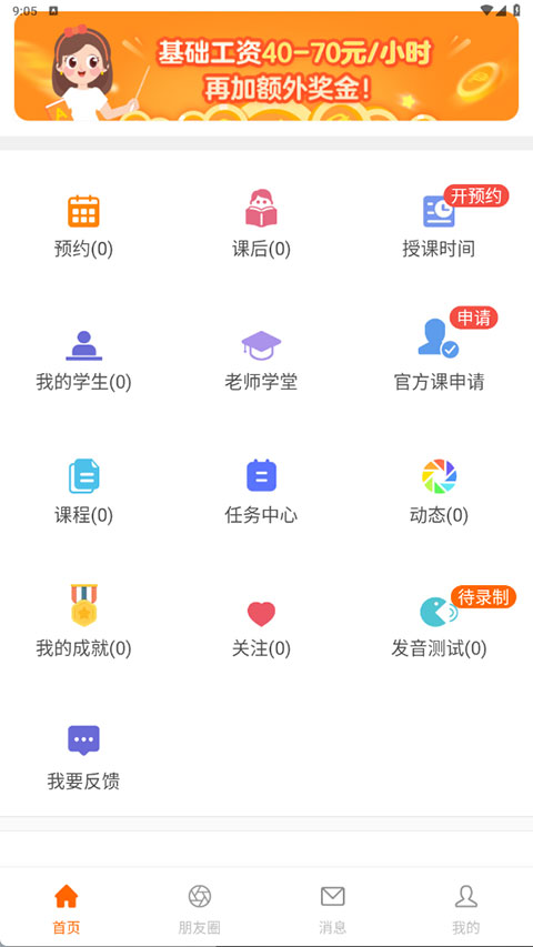 3、首页上方可以直观的看到自己授课时长、点评以及粉丝等,还有很多平台管理功能。