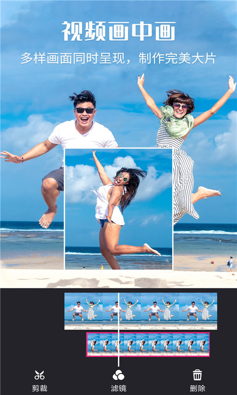 1、视频配乐 轻松制作高品质视频作品。 2、视频编辑 全能编辑,剪辑、旋转、字幕、配乐一气呵成。 3、照片滤镜 精选滤镜库,拍人没,自拍更美。 4、精美贴图和文字 精美贴纸、倒序播放、字母插播、特效选择。 5、智能美颜 随手一拍就是高颜值图片。功能介绍