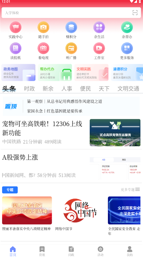 天工新余App是新余市广播电视台为本地市民推出的一款本地客户端应用。天工新余集资讯、问政、活动、首页板块,其中包含随手拍、余志愿、余生活、余帮办等多个服务入口,点击即可进入相应内容。天工新余手机客户端作为新余本地应用。