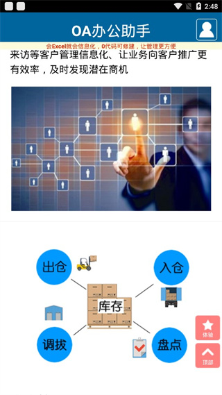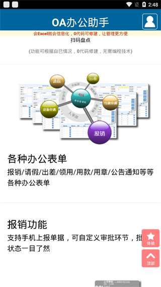 1、待办事项 2、项目管理 3、任务跟进 4、公告通知 5、工作签到 6、请假申请 7、合同管理 8、客户查询 9、扫码库存软件亮点