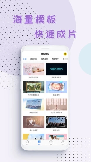 1、操作简单: 无需复杂操作,选择自己喜欢的视频模板一键制作,立刻拥有自己的相片视频。 2、模板丰富: 上百个视频模板,包含卡点视频、年会视频、婚礼MV、VLOG、宝宝成长相册等等,涵盖工作与生活的各个场景。 3、专业的AE视频效果: 视频特效具有震撼的视觉效果,专业的动画师保证视频的素材和转场的质量。 4、支持添加照片、视频、文字: 支持添加照片和视频进行制作,添加文字制作字幕效果,让你的视频更NICE! 5、支持16:9、9:16、 1:1: 多比例视频模板,满足不同使用场景需要,不论是大屏展示还是抖音、朋友圈等社交平台分享都能找到合适的比例模板素材。 6、制作的视频存储在云端,不占内存: 在服务器后台自动运行渲染和储存,关闭软件也无任何影响,节约内存空间,如果需要也可以将视频下载到手机。 7、高清画质: 1080P超清分辨率的处理技术让视频更精致,在高清电视、投影仪下播放更清晰。 8、多平台分享: 视频剪辑完成后,一键分享电子相册到qq空间、微博、豆瓣等各社交媒体平台,表达真挚情感,记录美好回忆。功能介绍