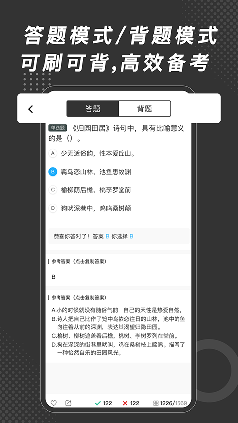 1、【硬过模式】 必须达到100%正确率方可通关。 2、【训练模式】 错题库模块可管理所有闯关过程中的题目。 3、【普通模式】 每关卡共3星,超过1星(正确率60%以上)则通关可继续下一关。 4、【读题模式】 其中用户可自行管理错题,设置自动移除模式。刷刷题app怎么用