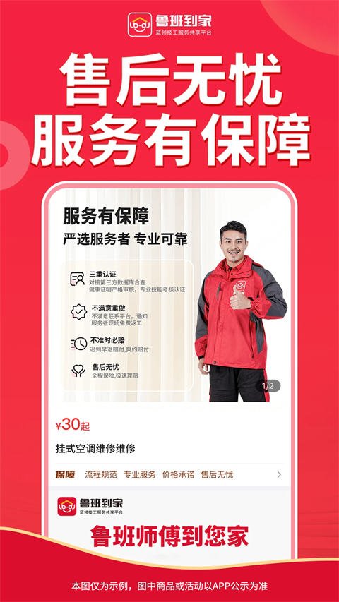 【师傅技能赞】 师傅实名认证,技能考核,分品类服务 【服务覆盖广】 师傅遍布全国,覆盖全国4万多个街道 【订单响应快】 就近匹配师傅接单,订单快至3秒响应 【下单模式多】 比价雇佣、标准一口价,多种下单模式 【交易有保障】 订单安全平台担保,专业保险全程保障 【售后有质保】 订单服务质保一年,服务问题全责保修软件特色