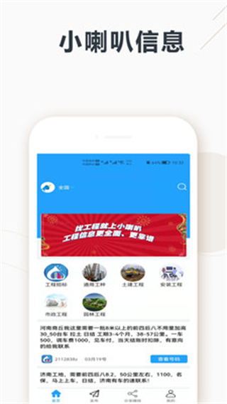 1、可满足不同工程供应商对信息的需求,同时也可以一键免费发布工程项目。 2、通用工种、土建工程、安装工程、市政工程、园林工程、等全方位的商业工程项目分类。 3、为所有各类工程行业供应商和需求方提供及时、准确、全面的工程信息,信息内容涵盖广泛。小喇叭信息注册流程