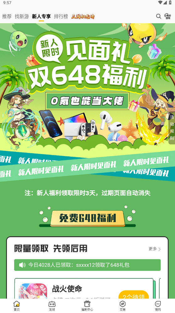 1、登录账号玩家即可在发现中或首页中预览、搜索各种手游。