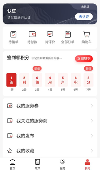用户点击下方我的,即可查看自己的信息和订单,以及进行企业认证,进行意见反馈等等。