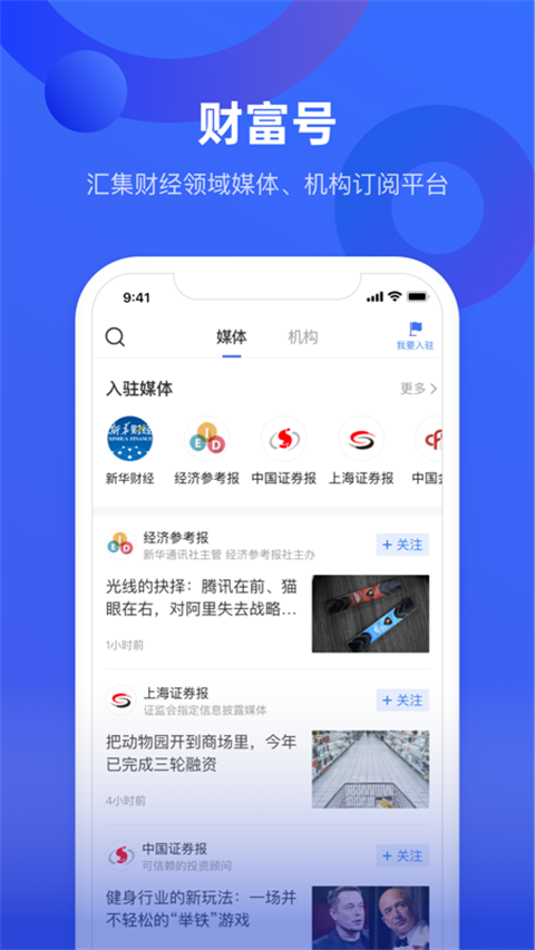 1、财经资讯:呈现集图文、视频、直播的全媒体财经报道 2、股市分析:每天邀请财经大咖解读股市机会 3、投资问答:财经版“知乎”,投资者的问题在这里找到解答 4、财富号:汇集财经领域媒体、大咖、机构的订阅互动平台 5、传闻澄清:汇聚官方、传媒及上市公司多渠道的资本市场辟谣平台 6、机构服务:为机构提供专业、多样的资本市场信息服务软件特色