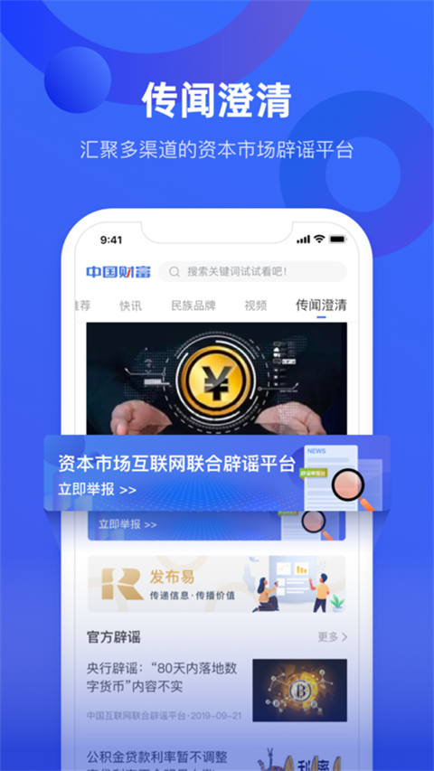 全新的财经融媒体 1、实时、专业的财经资讯。内容覆盖宏观、理财、基金、公司、股票、期货、新三板、证券、保险、创投、艺术品、汽车等多个领域。 2、专业、独到的财经视频。中国财富网财经视频团队倾力打造,视角独到,内容广泛。 独家视频直播带您亲临证监会、银监会发布会现场及国内国际重要金融论坛;更有股票、基金、理财、艺术品等领域专家为您解读热门话题。 3、全网独家全球视野解读中国财经变迁,全英文频道为世界发出中国声音。 可视化年报 信息披露智能可视化,第一时间披露,设计精良,轻盈阅读。 智能的金融数据 1、实时掌握股市、基金行情,公告、研报和相关新闻一屏尽览。 2、金融查:海量的金融产品和金融从业人员查询平台。 3、智能金服机器人:问股问基,多维度解答问题。更新日志