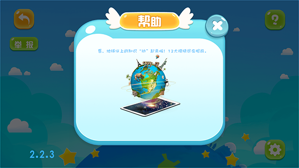 1、世界各国 世界各国涵盖了丰富的国家地理知识,包含对于每个国家的概况、百科、景点、节日以及美食。 2、大陆板块 在这里,我们向同学们小朋友们介绍了地球大陆架的相关知识,包含七大洲四大洋的详细信息和语音描述。 3、世界大学 汇集了世界各国的主要大学以及相关介绍,专业学科等。 4、恐龙乐园 在这里,小朋友们可以接触到早已经灭绝的史前霸主--恐龙,六十种恐龙,此外,他们还在乐园里等着你来和他玩耍,拍照留念哦。 5、动物王国 动物王国涵盖了陆地海洋天空的六十种鱼类、爬行类、鸟类动物以及他们的生活习性和形象特点。他们在动物王国等着小朋友们的光临呢! 6、航空航天 哇塞!超酷的东西就在这里,数种大小航天器、卫星,还有祖国发射的长征系列火箭呢。 7、天气现象 形象的介绍了所有的天气现象,可以身临其境的感受龙卷风、暴风雪、闪电,通过详细的语音讲解,可以很轻松的了解到他们的成因和背景小知识哦。 8、太阳系揭秘 用动画的形式展现了八大行星的运动轨迹和公转速度,此外还有日食、月食的彩蛋呢。 9、环保小先锋 主要介绍了当今世界的环境问题,以及成因和解决办法,小朋友们要充当环保小先锋哟! 10、世界冒险家 世界冒险家总结了古往今来、世界各国的冒险家,这些带着无限梦想和幻想的先驱们为我们留下了无尽的宝藏,快去读读他们的故事吧!九极星AR地球仪app激活方式