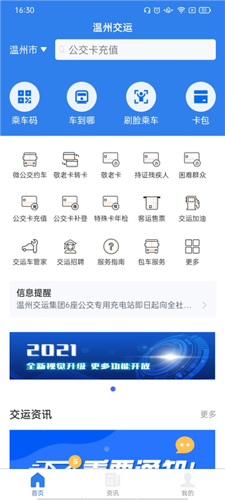 1、提供了包车服务,在线租赁各种车辆,并且各种型号的车辆都可以租到; 2、直接在线上就可以开通云卡,在外出乘坐公交车的时候就可以使用app支付费用; 3、在线上也可以充值公交云卡的余额,用户可以直接在平台内查看到公交卡余额; 4、一键查询自己地理位置附近的公交站点,知道公交站点经过的公交班次信息; 5、为大家规划出行线路,在外出的时候,可以直接利用温州交运app规划线路; 6、每一次充值余额的信息和使用app支付乘坐公交车的费用信息都有记录,自由查看。软件功能
