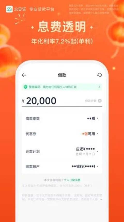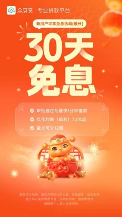 1、众安贷靠谱吗? 众安小贷app是重庆众安小额贷款有限公司推出的无抵押、纯线上消费信贷平台,专注为个人和小微企业主提供即时到账的贷款服务。是合规运营,符合国家监管要求的消费信贷平台。 2、申请额度需要哪些流程? (1)手机注册登录: (2)填写个人资料,进行信用评估(额度实时评估) 3、如何还款? 您在借款时需要绑定储蓄卡,众安小贷app默认在到期还款日从您的储蓄卡中扣除当期应还款项。请确认在还款日当日最晚20:00前保证还款卡中余额充足。您也可以通过登录客户端,发起主动还款。 4、如何保障我的资金安全? 在安全保障方面我们采用先进的安全技术并且相应的信息均为加密存储,保证信息交换及存储过程的安全性,保护您的资金安全。更新日志