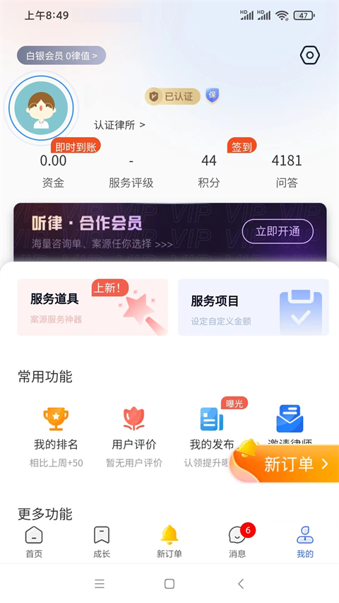 1、解决律师执业需求痛点,让律师利用碎片时间; 2、轻松获得高额收入,案源真实有效,收入到账快; 3、能够保护账户安全,全力保护用户的资金安全; 4、精准为你匹配,专业领域、地域精准的筛选匹配; 5、能够让律师享受咨询接案+云办公的一站式体验。更新日志