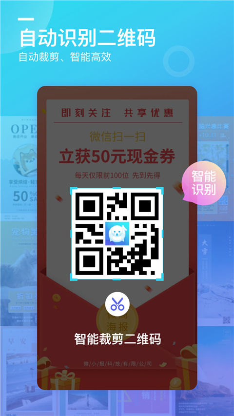1、搜索功能 方便快速搜索自己想要的模板。 2、编辑器 自由添加文字和图片,二维码自动识别。 3、海报制作 做出大片感,玩出文艺范,给你带来图文炫酷新体验。 4、海报设计 一键设计微商电商促销、微信淘宝首图等手机海报。 5、海报模版 多种分类丰富精美的图文模板。 6、邀请函制作 海量的模板让你简单成为电子请柬制作专家。 7、海报拼图 功能多、简单易用;风格多、特点鲜明。 海报设计 做海报、写请柬、玩创意设计。 8、海报宣传单制作 做出大片感,玩出文艺范,给你带来图文炫酷新体验。微商海报怎么制作