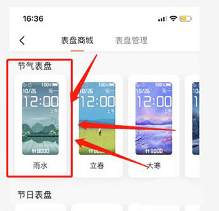 2、接下来选择喜欢的表盘,在页面中,点击选择喜欢的表盘。