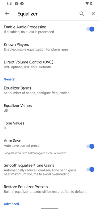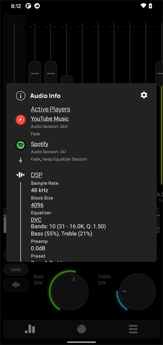 1、基于 Poweramp 的均衡器; 2、可配置频段; 3、固定频段 5/8/10/12/15/16/24/31/32; 4、或自定义5-32频段,可对开始/结束频率进行配置; 5、+/-15dB; 6、强大的高/低音控制; 7、前置放大器; 8、内置预设,用户可进行自定义; 9、可为特定设备指定预设; 10、预设可自动保存; 11、限制器和压缩器; 12、平衡; 13、Poweramp DVC 模式可实现最高的均衡范围,非 DVC 模式在全球范围内支持所有播放器应用; 14、支持大多数第三方播放器/流媒体应用; 15、在某些情况下,需先在播放器应用设置中启用均衡器; 16、高级播放器跟踪模式可在几乎所有播放器中实现均衡,但需额外授权。Poweramp均衡器最佳设置
