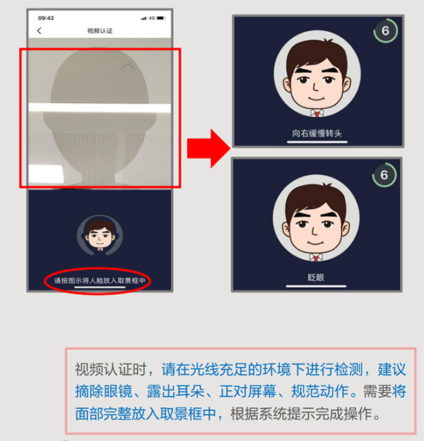 2、之后跳转至视频认证界面。按图片信息进行操作。