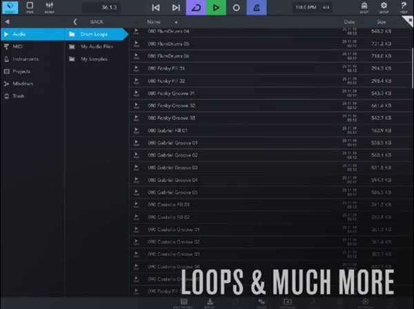1、内置超过300个MIDI和音频loop