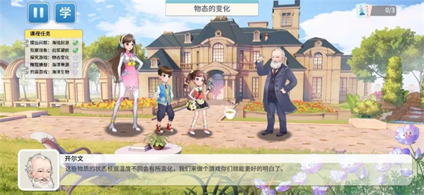 可以说,每一课都是一个小小的PBL式探究项目,用孩子的好奇心或者一个故事来引入。随后我们会跟随樱桃舰长驾驶“闪光号”飞船,穿越时空,去探访一位大师,不仅是学知识,也会聆听大师的思考路径。比如在物态的变化这一课中,他们拜访了开尔文,跟随他一起讨论物态的变化。