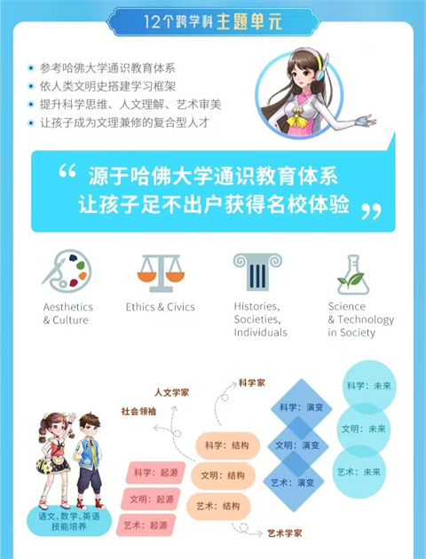 哈佛大学通识体系,融合科学、人文、艺术三大领域,搭建顶层知识框架,建立跨越古今中西的知识视野