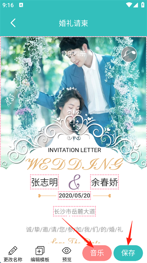 1、一键套用 三步轻松制作精美音乐相册、视频相册、电子相册、短视频、朋友圈视频、企业宣传相册、贺卡邀请函等。 2、一键拼图 支持个性化编辑设计图片,丰富的文字和素材,选择喜欢的模板即可生成精美主题拼图。 3、一键打印 拼好的海报支持便捷冲洗照片并邮寄上门。 4、一键生成 精品贺卡邀请函,祝福、婚庆、开业、生日等海量主题任君挑选。音乐相册制作App如何制作婚礼邀请函?