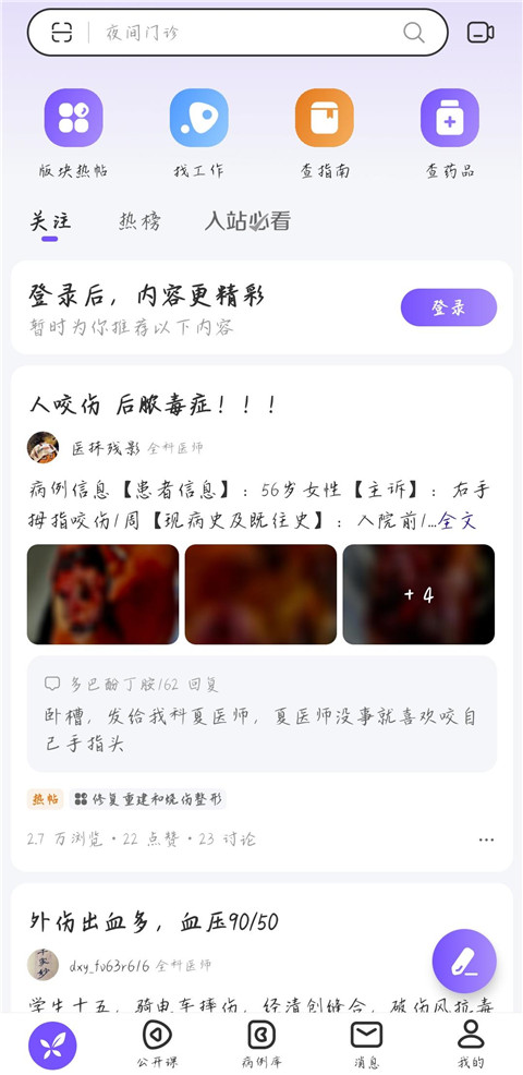 丁香园,拥有百万专业用户的医药讨论社区。 这里有覆盖临床经验、病例讨论、考试晋升、求职招聘、科研投稿、在线教育等权威、精华的内容。 丁香园,专注服务医疗领域专业用户,伴随中国三百万医疗领域专业人士成长二十年。软件特色