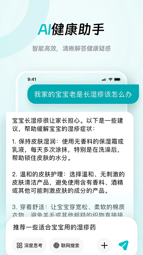 1、在线问院士专家:针对复杂病情,对接领域内院士专家,提供专业建议,帮助用户更好作出诊疗方案。 2、疾病风险预警:通过疾病智能测评,提前了解自身健康状况,洞察健康隐患,预警潜在的疾病风险。 3、慢病管理:百余支院士专家团队权威指导,提供个性化健康管理计划,科学规划您的饮食、运动和生活习惯。 4、报告解读:复杂体检报告一键解析,指标清晰易懂,助您快速掌握健康状况。 5、家庭医生:实现家庭医生一对一健康管理指导服务,拥有专属于自己的“健康管家”。 6、养生科普:提供丰富的健康知识库,涵盖疾病预防、养生保健等内容,助您轻松掌握健康生活秘诀。 7、体重管理:智能记录体重变化,助力科学减重,塑造理想身材。软件亮点