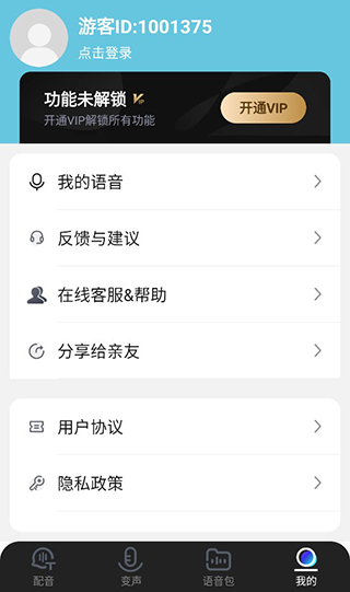 用户点击我的即可进入个人中心,可以查看自己的信息和录制的语音。