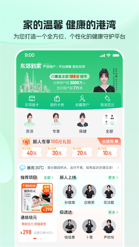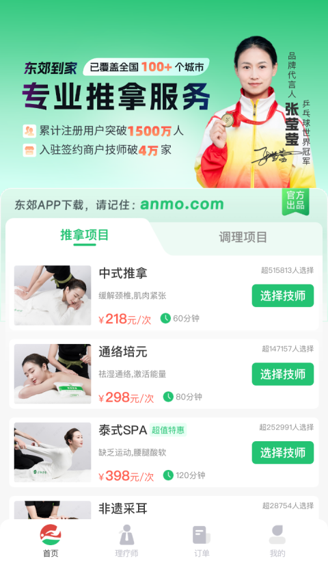 1、能够进行价格筛选,还能寻找最便宜的推拿服务,花小钱就能处理相关问题。 2、直接进行线上预约,只需要结算服务账单后,24小时为您提供上门推拿服务。 3、自动统计整理订单,方便管理订单,也方便查询订单,掌握预约服务详情。 4、提供超多服务项目,如中式推拿、泰式SPA、淋巴排毒等,多种类服务项目都有。 5、支持进行附近筛选,以你的城市位置为前提,直接查找附近技师,就近下单预约。 6、能够为技师评分,在服务项目完成后,用户可以直接反馈技师的服务态度。东郊到家服务项目明细