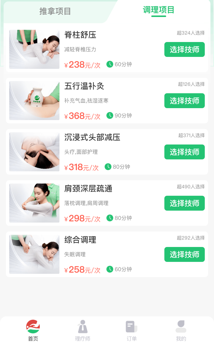 调理项目:脊柱减压肩颈深层疏通 综合调理 沉浸式头部减压 五行温补灸