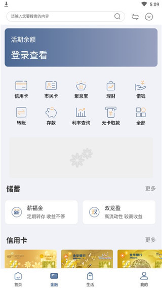 4、点击金融,可以查看各类金融服务和理财产品