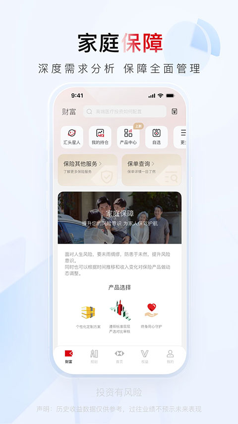 1、财富管理:五大维度财富健康测评, 从资产均衡性、资产配置、资产负债、收入支出、保险保障五大维度出发,了解自身财富配置现状及风险点。 2、账本:9种类型家庭账本,协助用户科学认知自身财富状况。 3、14类实用工具,包括7类家庭保障类工具,如学费查询、个税查询、保单扫描、医疗费用查询等;3类财富规划类工具,如基金筛选器、财经日历、基金知识图谱等;4类健康风险干预工具,如癌症测试、睡眠测试、气色测试、运动测试。 4、除了分享汇丰视角下的洞察与评析,“汇丰汇选”也与财联社、第一财经、Financial Times、南方周末等头部媒体合作,帮助投资者及时把握机遇。 5、活动专区:线上线下交互式财富专题系列活动,与财富、健康、教育、养老等不同学者专家近距离接触。软件功能