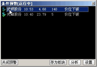 在预警列表上双击“价位下破”或者“价位上破”的股票项,将弹出闪电卖出或者闪电买入的对话框,如下图: