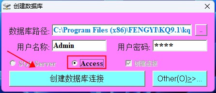 4、再重新双击桌面软件图标,出现你“创建数据库”的对话框,选中Access后,再点下面的“创建数据库”。