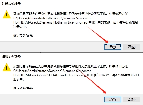 10、依次双击Siemens_Flotherm_Licensing.reg和SolidSQUADLoaderEnabler.reg文件。