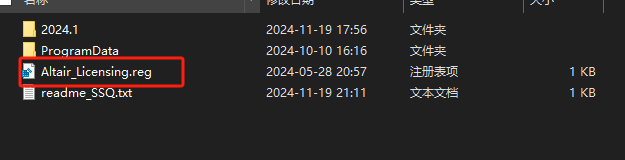 14、然后再返回解压好的文件夹,双击运行“Altair_Licensing.reg”;