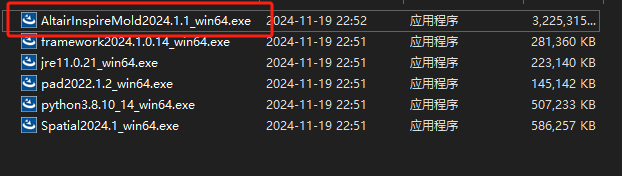 2、然后回到解压的文件夹,找到“AltairInspireMold2024.1.1_win64.exe”文件,右键管理员身份运行;