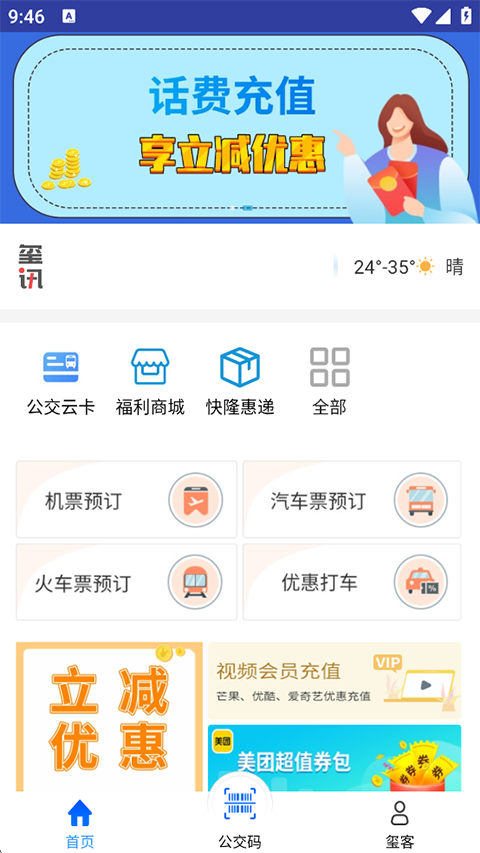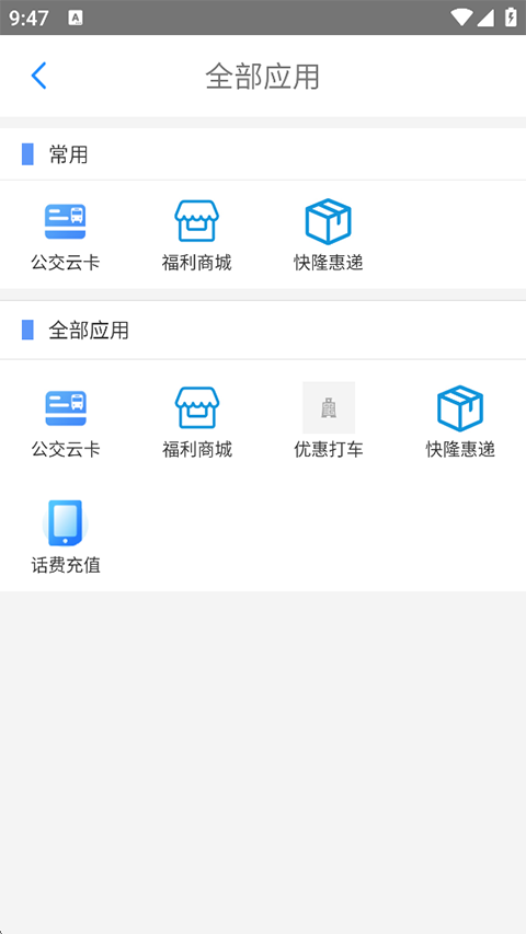 1、在主界面,点击左上角的“公交云卡”。