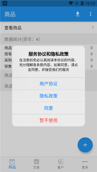 3、软件内提供了商品、交易、客户、更多四大板块功能,不同的功能都能解决相应的问题;