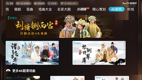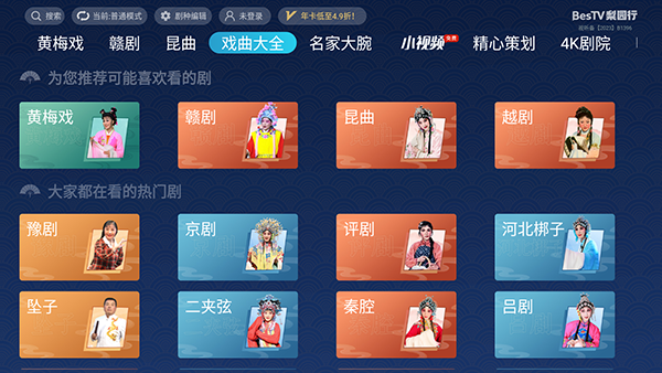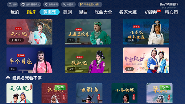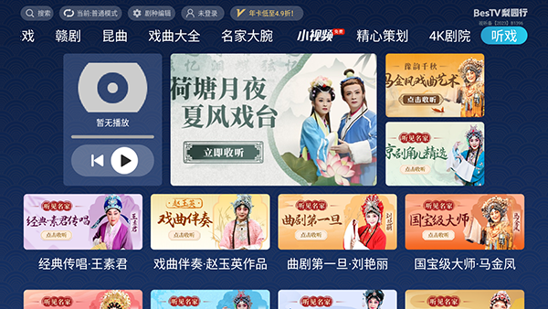 1、剧目庞大,剧种丰富 涵盖京剧、粤剧、黄梅戏、豫剧、昆曲等百余剧种,过万知名传统剧目,经典荟萃。 2、戏曲名家,优质经典 汇集梅兰芳、梅葆玖、李胜素、于魁智、丁凡、曾小敏等古今中外杨名的戏曲大家精选作品,各派系代表作品,百家梨园争鸣。 3、正版引进,品质保证 通过严格正规的版权引入渠道引进正规戏曲版权资源,严选品质,带你享受最优质的视觉盛宴。 4、智能推荐,千人千面 梨园行戏曲TV版多维度结合建模进行精准内容推荐,实时更新推荐戏曲视频。梨园行戏曲TV使用说明