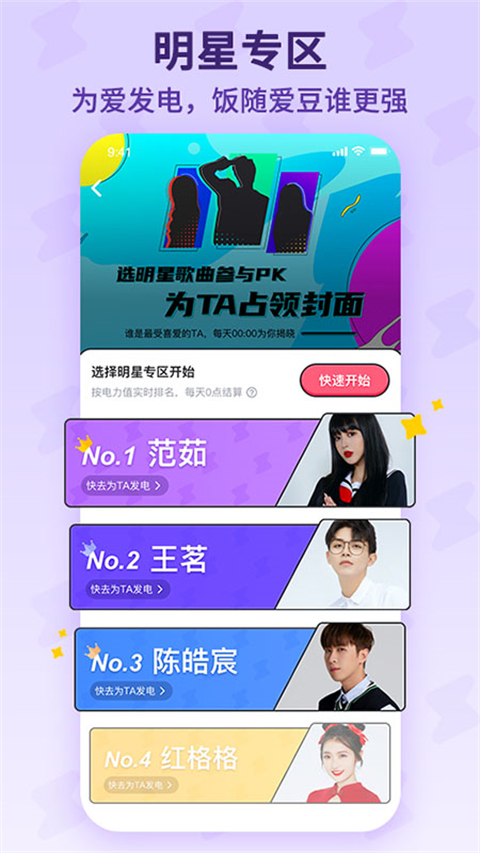 1、全新设计的在线K歌界面,海量的歌曲库让大家去自由选择,听歌的时候能给你与众不同的感受; 2、喜欢的歌曲能跟着音乐一起唱,在这里K歌狂欢也是很好玩的,也能关注更多K歌达人; 3、很多火爆的音乐这里都会有,一起唱歌的时候会让有更多的选择,想唱什么歌都可以; 4、手机上的练歌房能给大家带来别样的K歌感受,这里的网红歌曲也会不断的更新上线; 5、专门会有修音软件帮用户们去完善自己声音的缺陷,你唱过的歌都可以反复去听; 6、这里提供的K歌玩法会让大家很喜欢,在唱歌的时候整个人都能特别的放松;更新日志