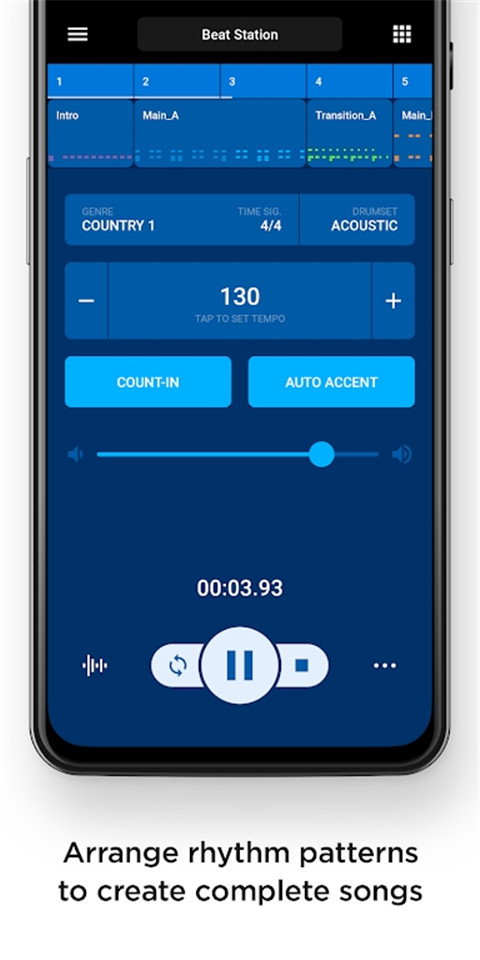 1、6 种高品质鼓音源 2、超过 1500 种节奏乐段,126 种常见节奏型,涵盖十余种音乐风格 3、两种操作模式,轻松控制节奏乐段 4、后台播放音频 5、将编曲导出为音频文件Beat Station中文版怎么用?